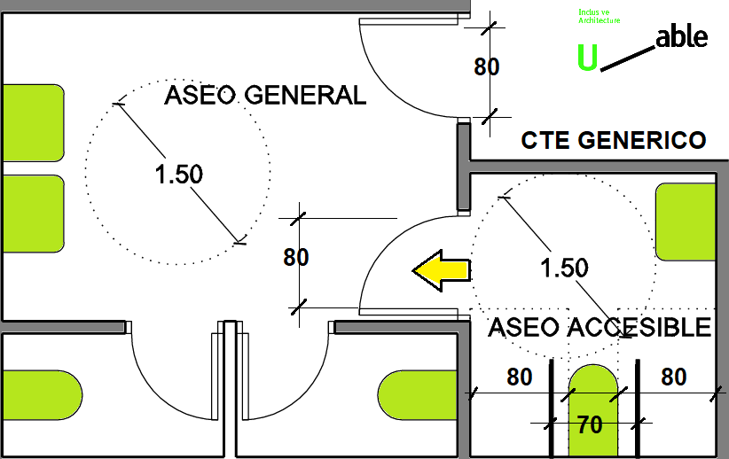 La normativa en general favorece el uso de aseos accesibles de uso compartido, aunque el diseñador debe tomar una decisión según el siguiente dilema.